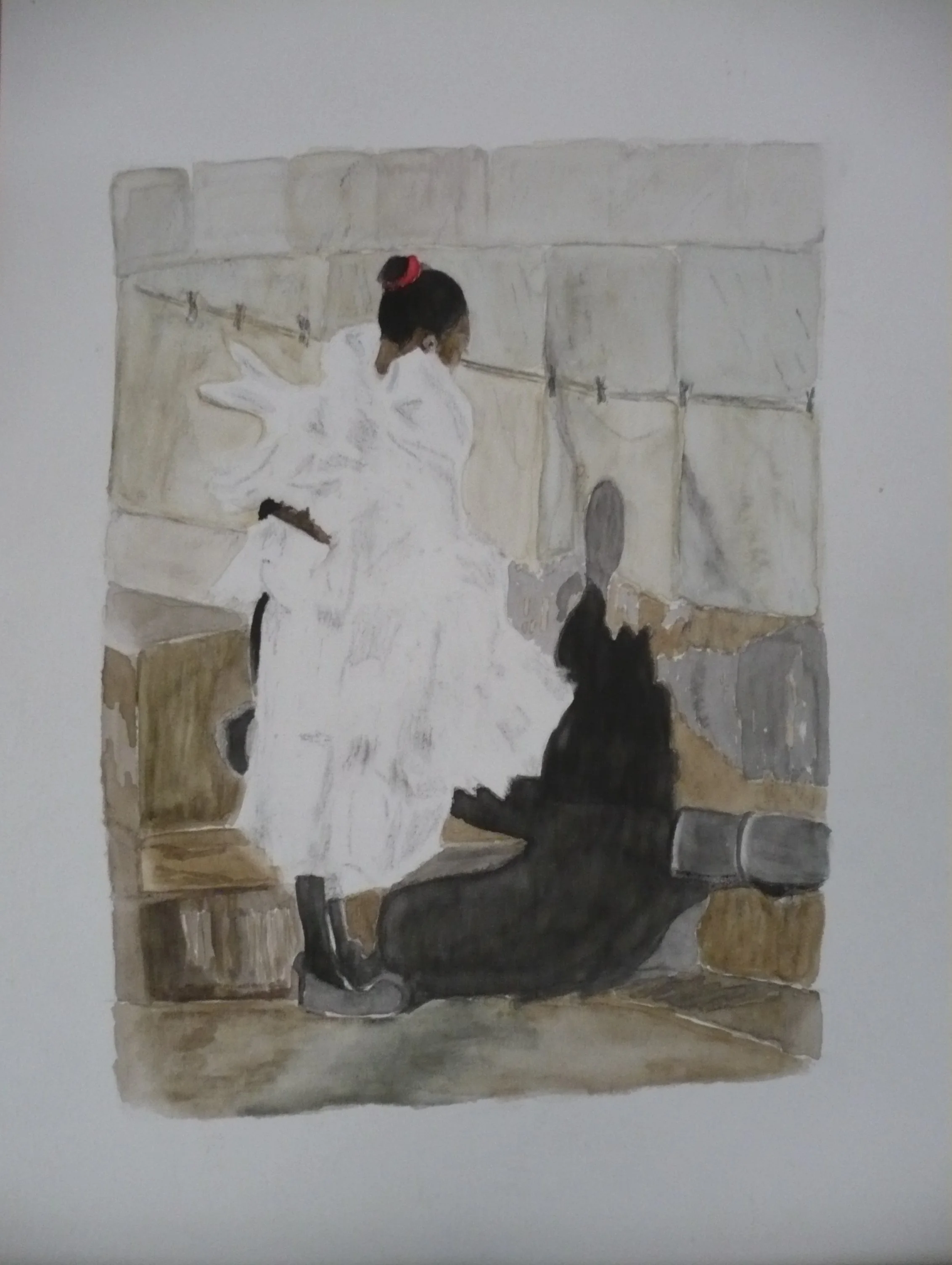 Uma tarefa feminina, a de recolher roupas de um varal,
